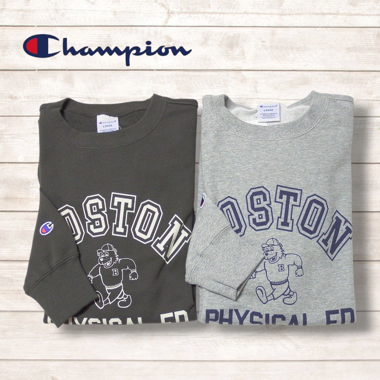 胸のプリントはチャンピオンと親和性の高いカレッジ風の書体による文字で、
